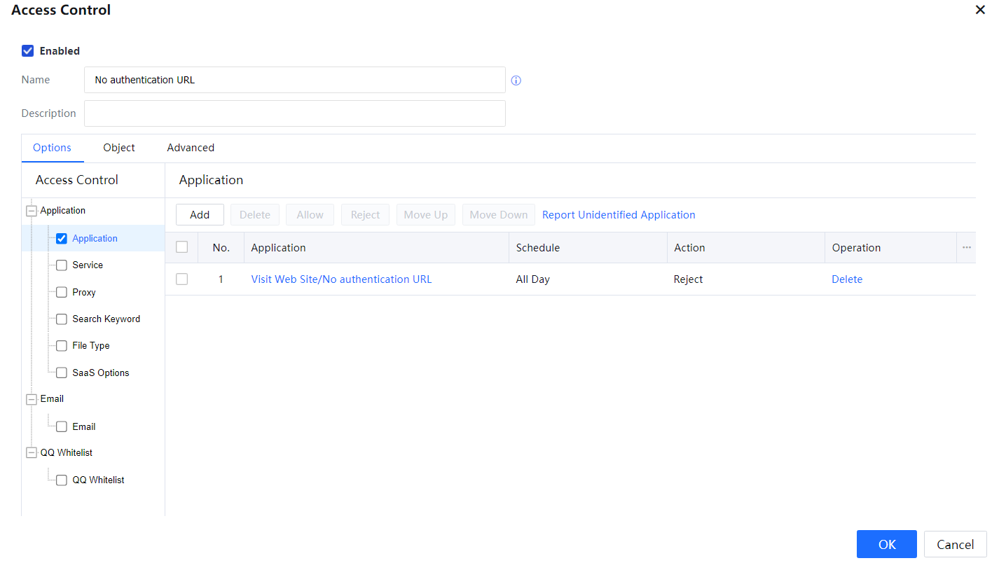 Step 2.Set an Internet access policy to allow accessing the URL.