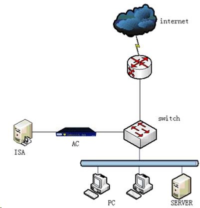Configuration Example 4: A customer has an ISA server, and intranet users access the Internet through the ISA server, which functions as a proxy. The IAG is deployed between the ISA server and a switch to implement control and audit. Intranet users must be able to access the Internet without being authenticated. On the IAG, IP addresses are used as usernames.