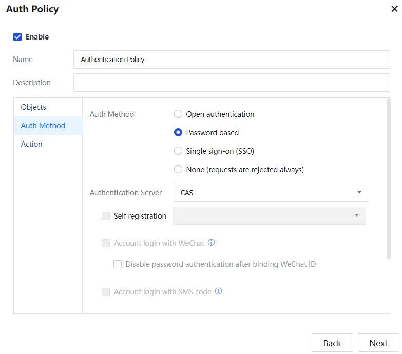 1. CAS server authentication is applicable to the following deployment modes: Route mode, Bridge mode, and Bypass mode.