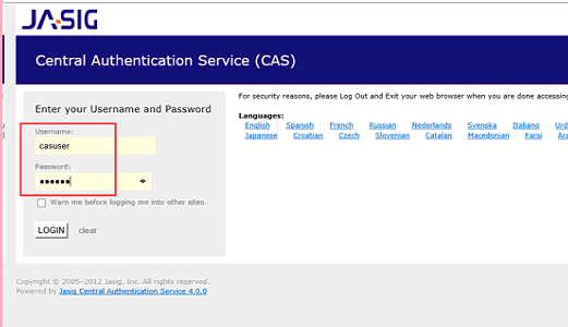 Step 1.Ensure that the CAS server is deployed correctly in the network and obtain the CAS server account and the URL used to connect to the CAS server (URL example: https://ip:8443/cas/login).
