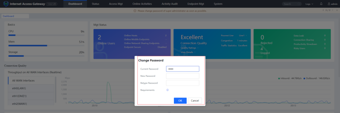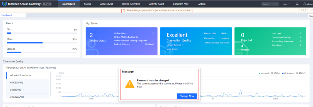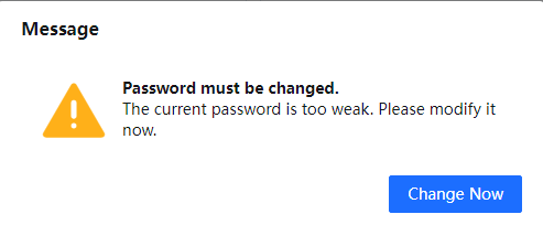 If the user's password is too simple, it will be detected to be weak. On the console, the system prompts to modify the weak password after login. The popup is shown below: