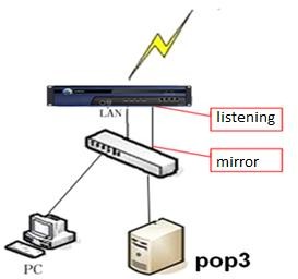 - A user uses a mail client to communicate with the POP3 server, and the device monitors the communication.