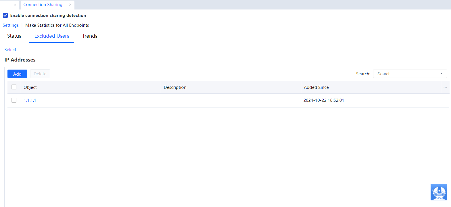 Step 4.Access the Excluded Users tab and add the users, user groups, and IP addresses not involved in detection are added to the trusted list. See the following figure.