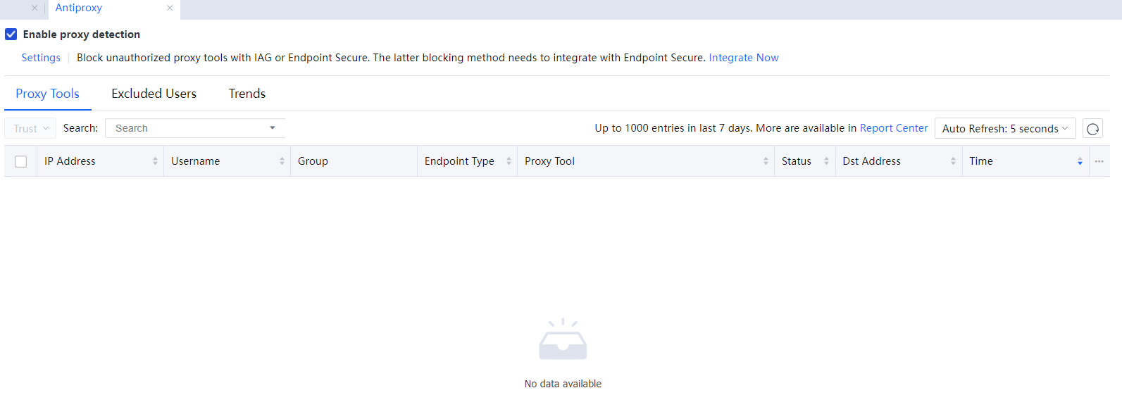 By default, proxy detection is enabled, but the proxy tool will not be blocked. However, if the use of the proxy tool is detected, a prompt message will appear on the dashboard, as shown in the following figure: