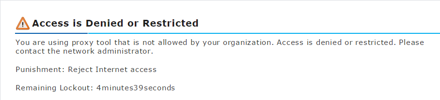 After configuring anti-proxy, if any user tries to access the Internet through a proxy tool like FreeGate, he/she will be redirected to the following page:
