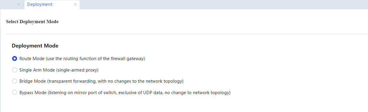 The IP address belongs to the network segment for direct connection between the firewall and the L3 switch. Choose System > Network > Deployment, click Settings, and select the Bridge mode.