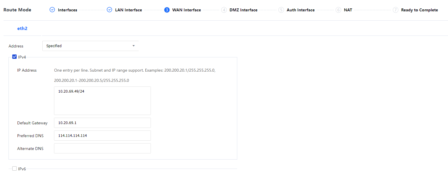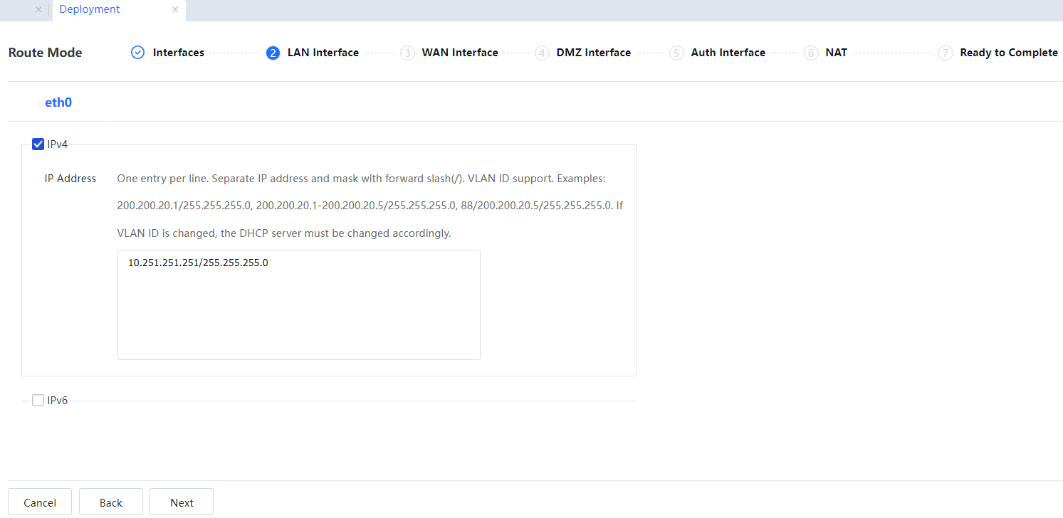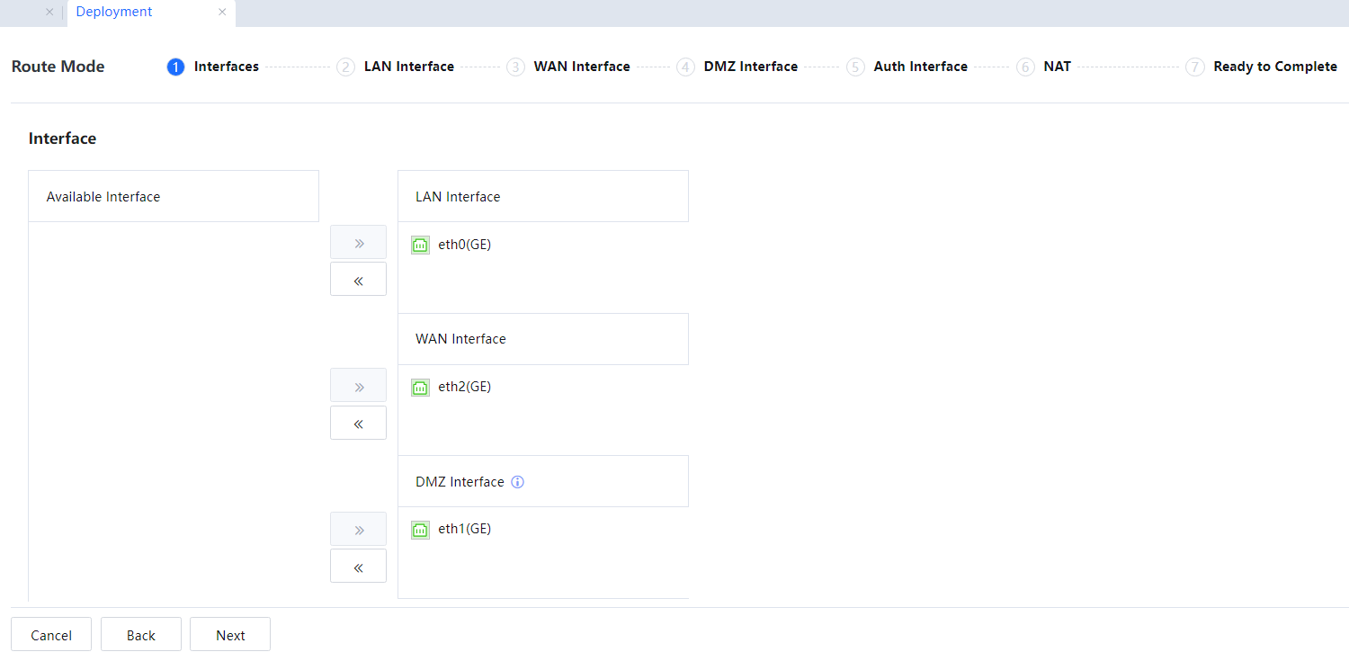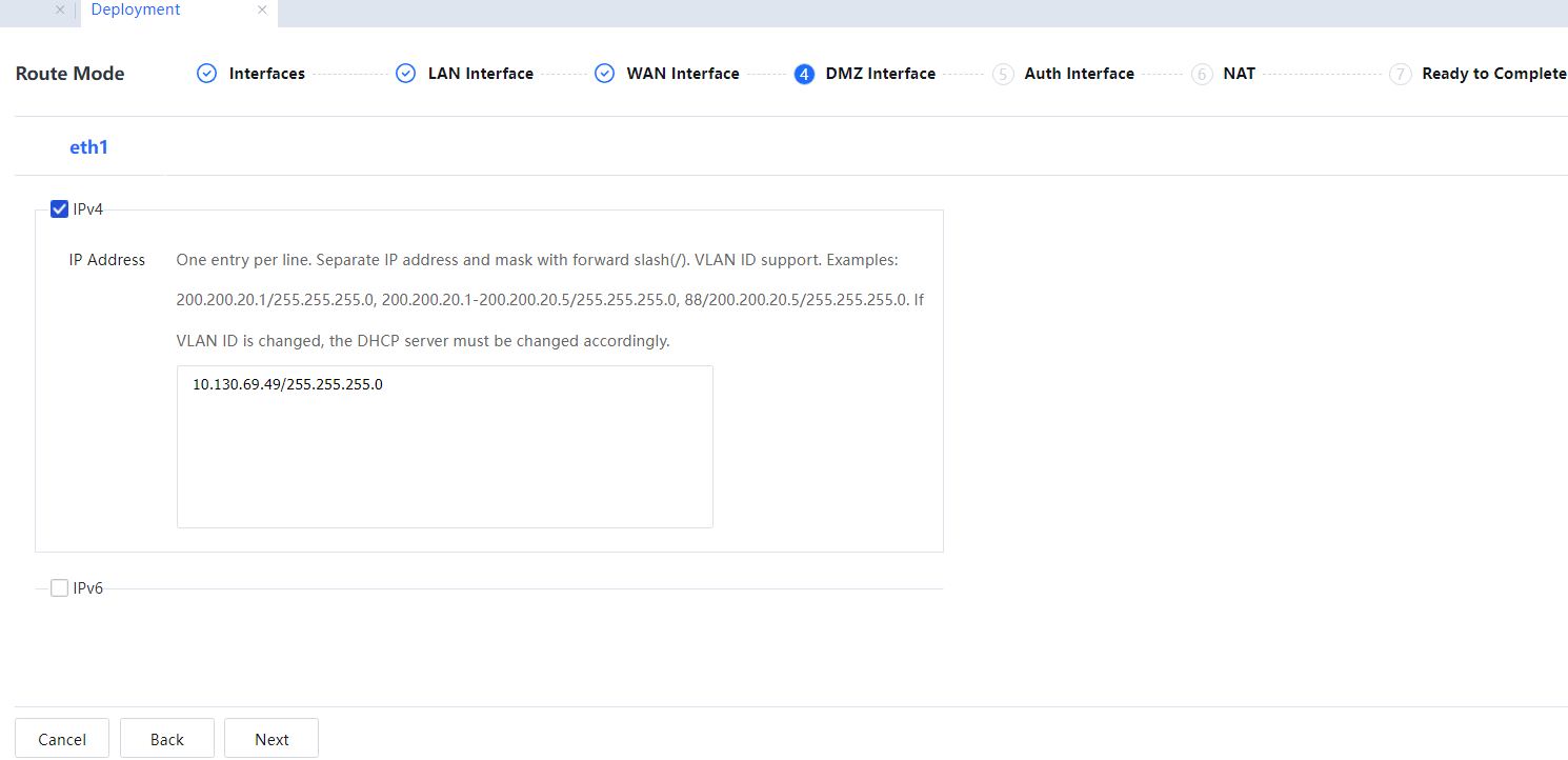 Click Next and set the IP address of the DMZ management port. You can retain the default settings.