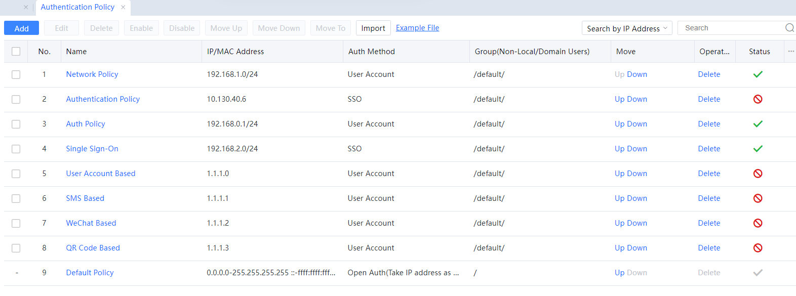 Step 5.Add an authentication policy for the common employee group and another for the director group at Access Mgt > Authentication > Web Authentication > Authentication Policy.