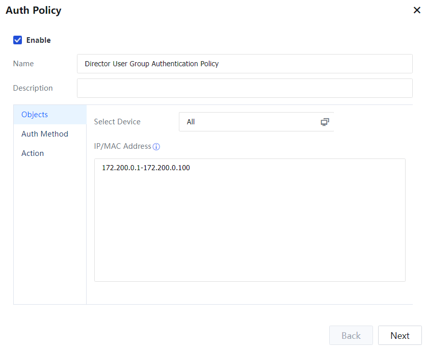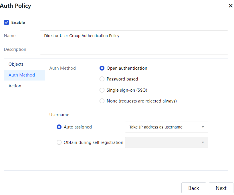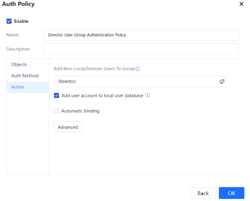 Click Add and set an authentication policy for the director group. See the following figure.[LCH376]