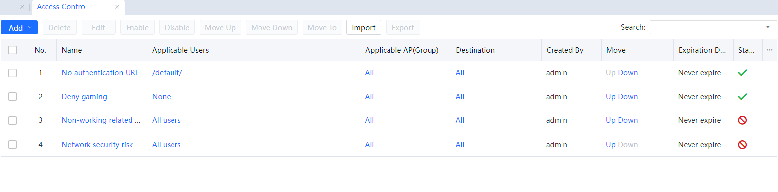 Step 6.Set the Internet access permissions for the common user group at Online Activities > Access Control.