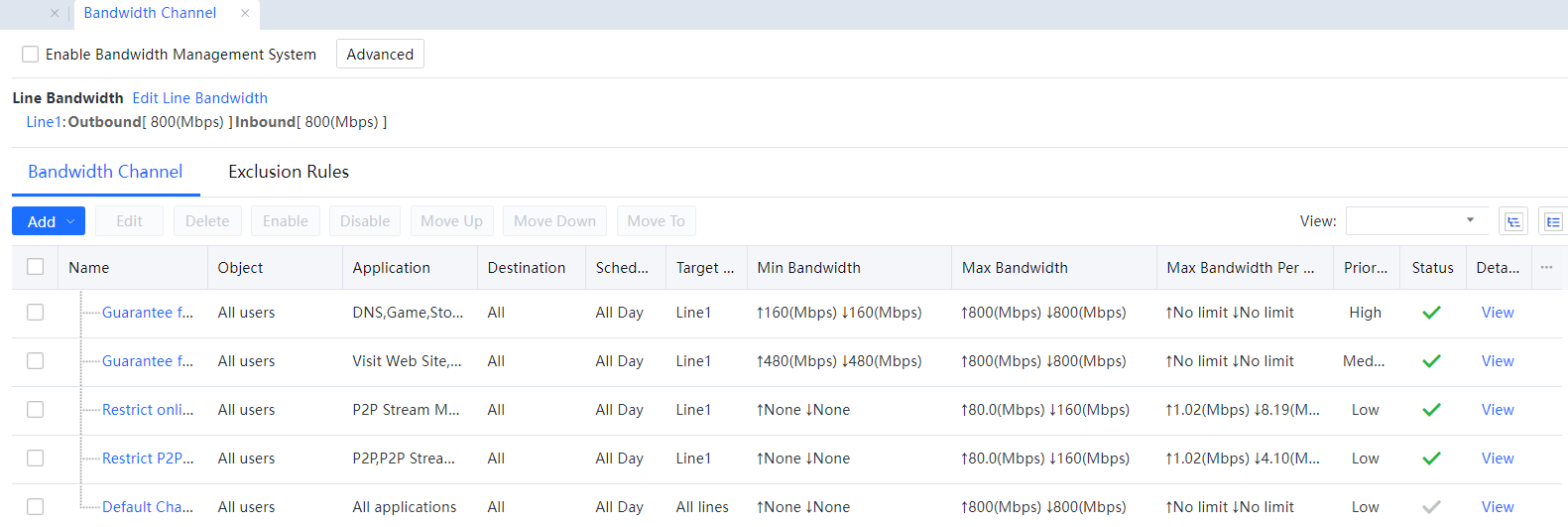 Step 8.Set the Bandwidth Management policy. Set the line bandwidth at Bandwidth Management > Line bandwidth.