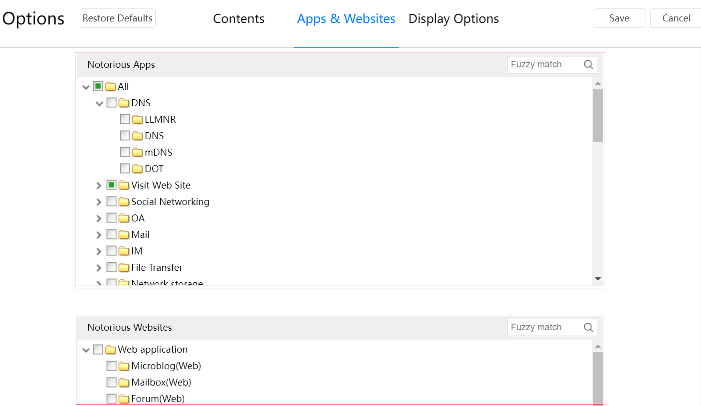 Check a specific notorious app category to be displayed in Notorious Apps, and check a notorious website category to be displayed in Notorious Websites. Both options support fuzzy queries.