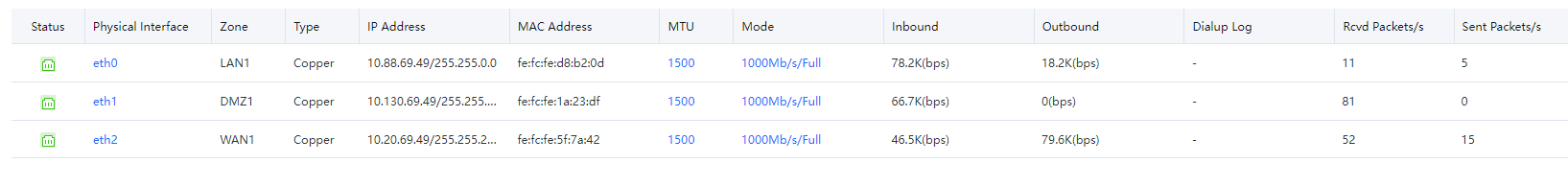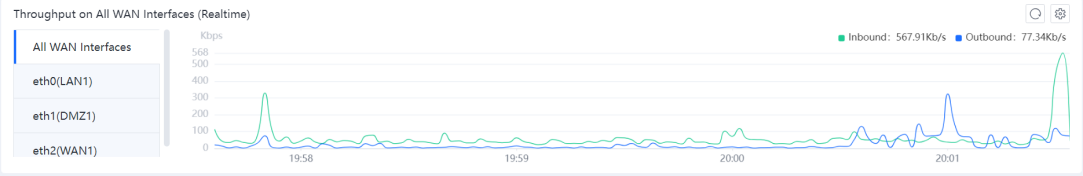 The Throughput on ALL WAN Interfaces section displays the real-time conditions of data received and transmitted on interfaces in a curve, as shown in the following figure.