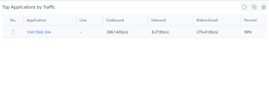 The Top Applications by Traffic section displays the top 10 applications by traffic. You can rank the applications by outbound, inbound, or bidirectional traffic.