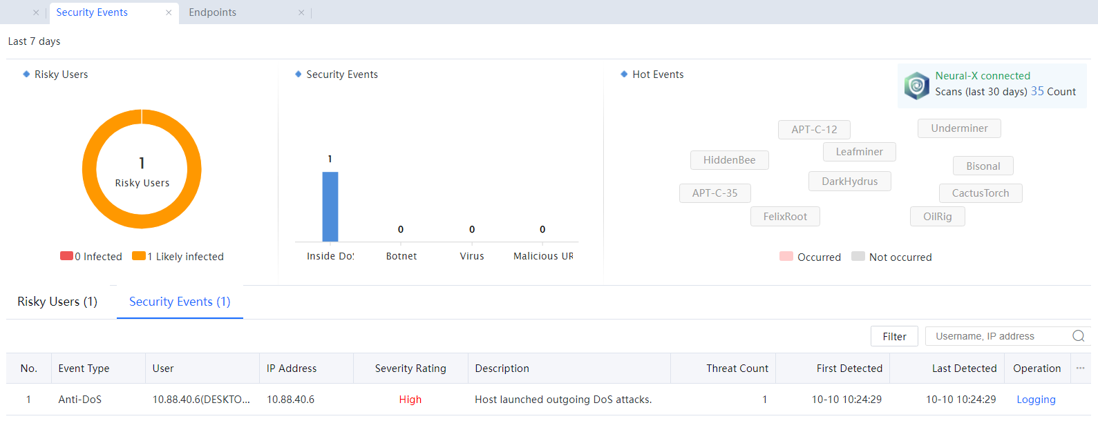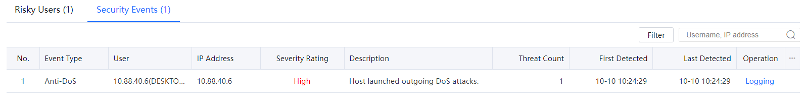 The Security Events section displays the number of times insecure behaviors are detected. See the following figure.