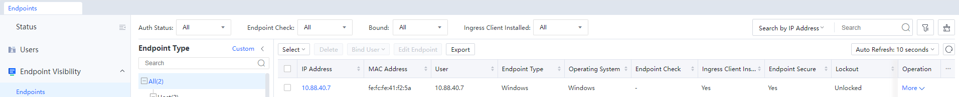 Click the Filter to set the specified condition to view the corresponding endpoint. The interface is as follows: