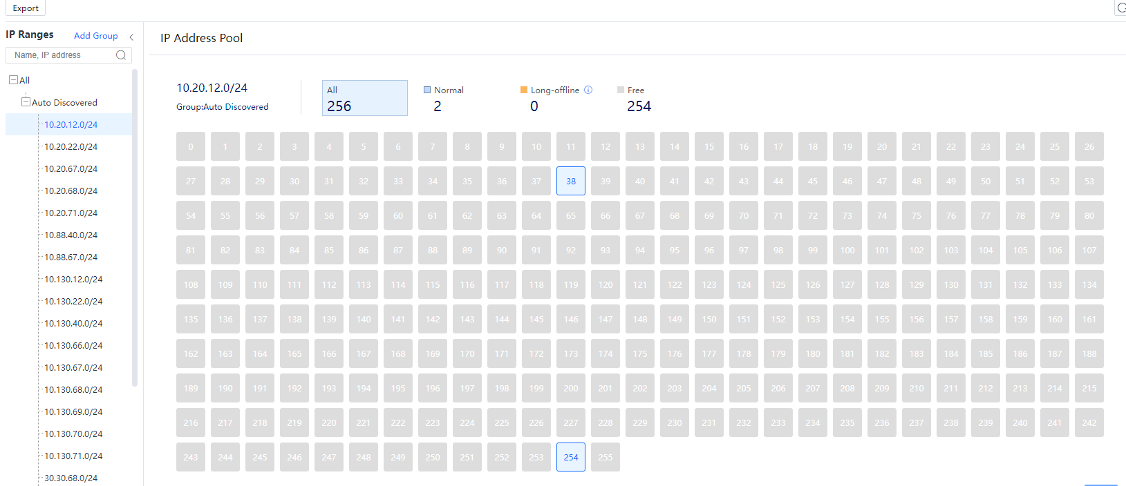 IP Ranges display the 24-bit address segment where the surviving IP address of the intranet is located, with a maximum of 1024 C segments.