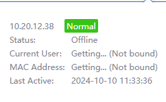 Normal: Indicates that this IP has been scanned alive within a period (the default is 30 days, configurable). Online refers to whether the endpoint’s IP is in the online user list. If there is, it means the user has used the endpoint to go online, and it will display the user and group information at the same time.