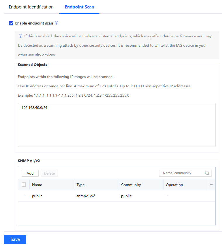 Scanned Objects: Endpoints within the following IP ranges will be scanned.