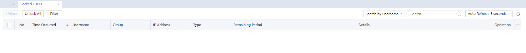 Select a locked user and click Unlock to unlock the user. Click Unlock All to unlock all users.