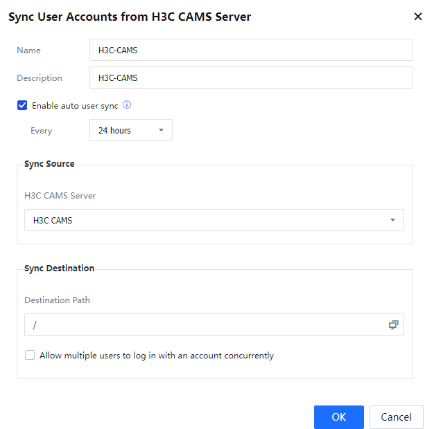 3.5.1.5.2.1 Add Sync User Accounts from H3C CAMS Server
