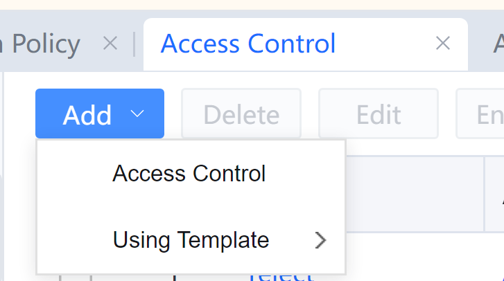 - On the Access Control page, click Add, and select Access Control.