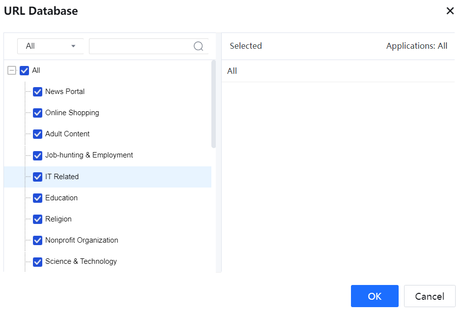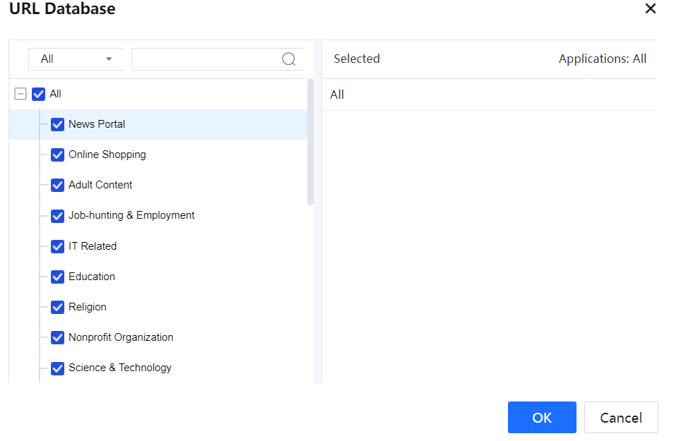 - In the URL Database, no URL group is specific to Gmail. Therefore, set a URL group and add the URL of Gmail before setting the policy.