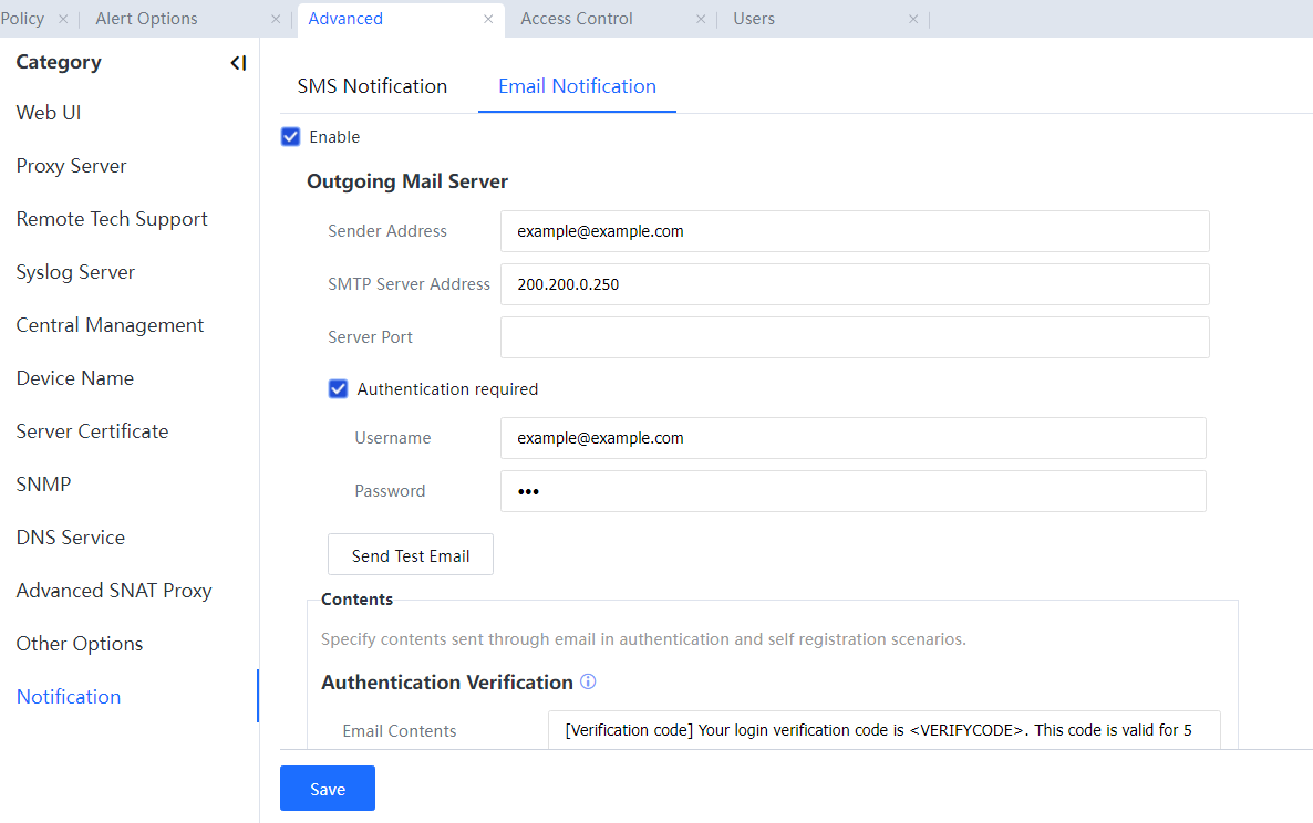 5.Before enabling mail filtering, ensure the IAG can connect to the mail server correctly. Otherwise, emails cannot be sent.