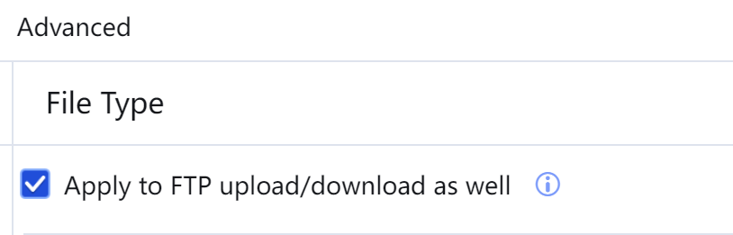 - Select File Type. On the File Type pane, click Add and set related parameters. Click the drop-down button below File Type and choose a keyword group. Select Apply to FTP upload/download as well.