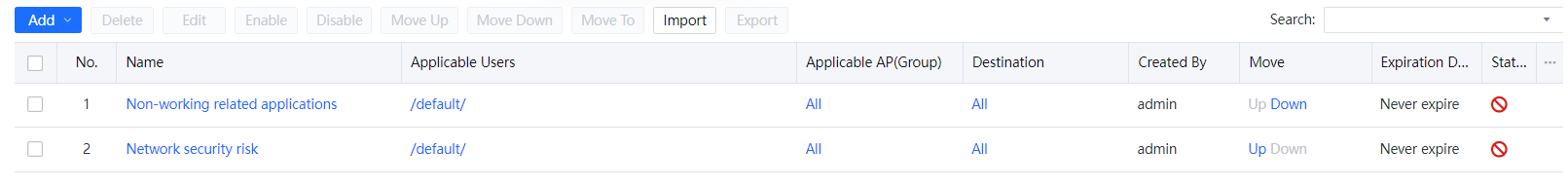 Suppose the organization structure managed by a high-level administrator covers the one managed by a low-level administrator who creates a policy. In that case, the high-level administrator can delete the policy. Suppose the organization structure managed by an administrator covers the one managed by another administrator at the same level who creates a policy. In that case, the former administrator can delete the policy only when Edit is selected for administrators at the same level.
