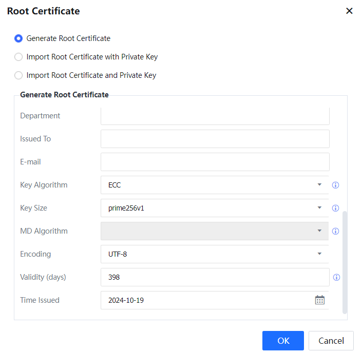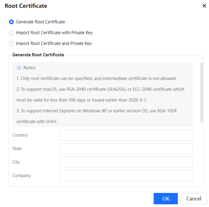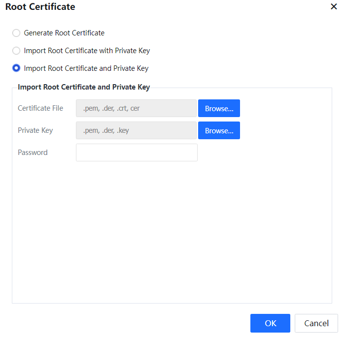 3.6.2.2.2.3 Import Root Certificate and Private Key