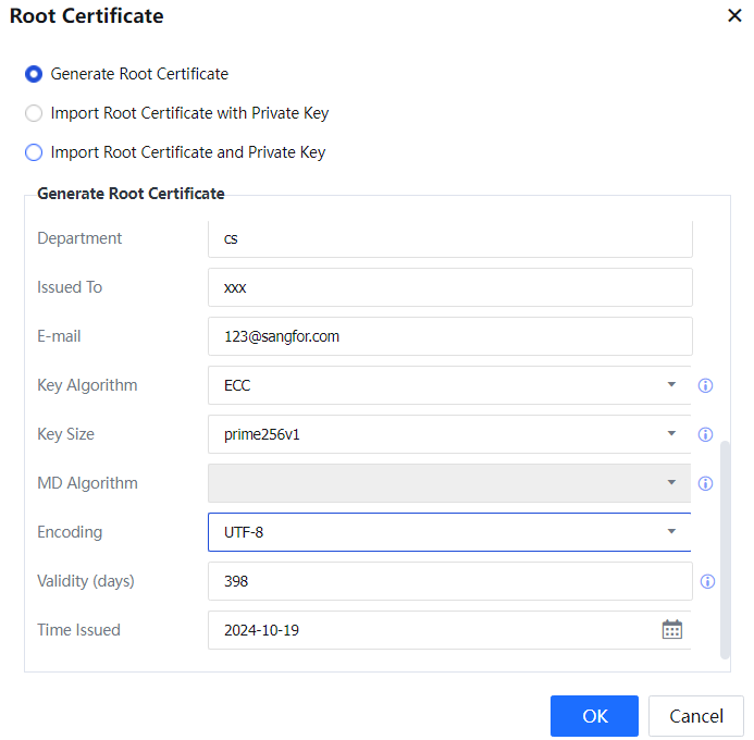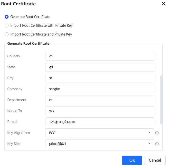 After you return to the configuration page, Root certificate has been specified. Click OK[A96] to apply the changes on the page for further confirmation.