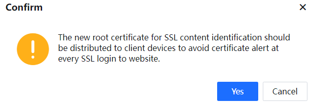 Enable SSL Contents, and then the endpoint browser will alarm that the certificate of the HTTPS website cannot be validated. The alarm can be removed when the certificate is imported into the endpoint computer. Root certificates of previous devices only can be imported into the built-in root certificate of the Sangfor device, which supports custom certificate import.