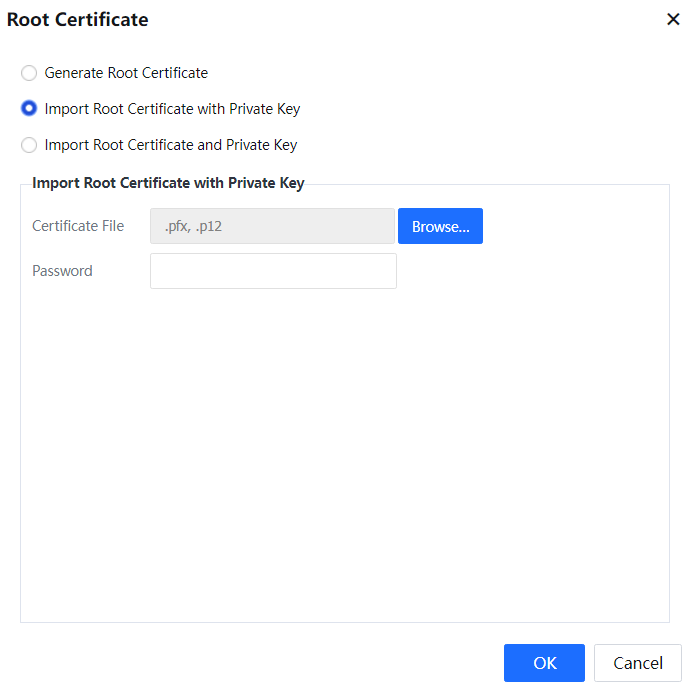 3.6.2.2.2.2 Import Root Certificate with Private Key