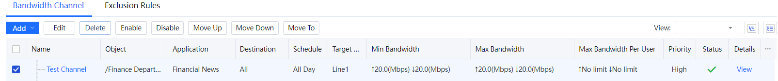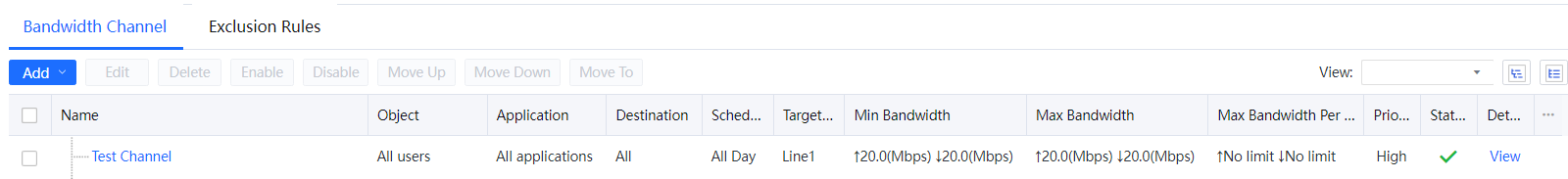 Max Bandwidth Per User: Limit the bandwidth occupied by a single user matching this channel. In this example, there is no need to limit the maximum bandwidth of a single user, so do not check here.