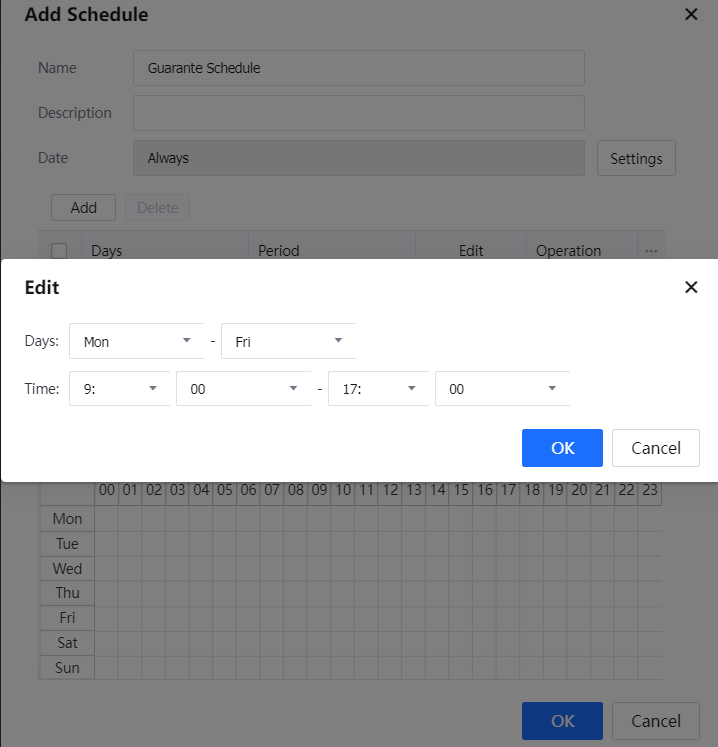 Step 6.Configure the effective period of the channel in the Schedule column. The administrator can customize the effective period according to the working hours of the enterprise. Click Add Schedule in the Schedule column to start customizing the effective period of the strategy, and click Add to add the execution channel time.