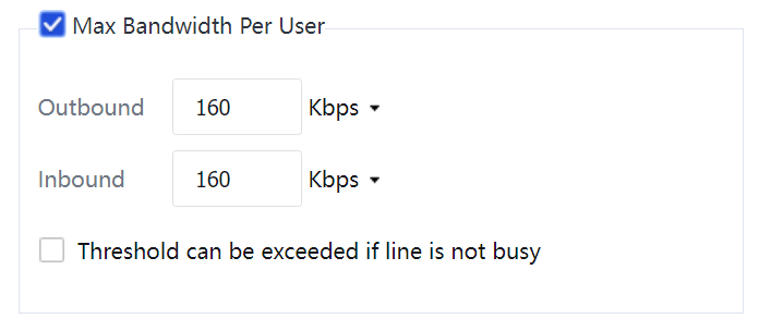 Maximum Bandwidth Per User: To limit the bandwidth available to each IP address using the channel. This example does not involve this limitation. Therefore, do not select this option.