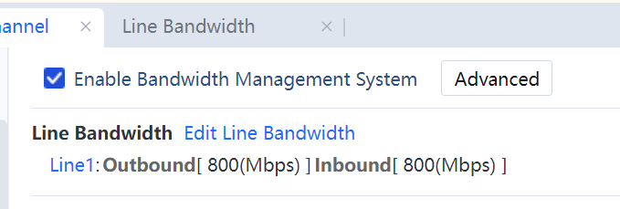 Step 1.Choose Bandwidth Management > Edit Line Bandwidth and configure Internet line bandwidth. Click Line 1. In this example, the company leases an 800 Mbps line; therefore, the values of Outbound and Inbound are set to 800 Mbps.