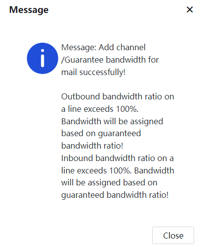 Step 4.Close the notification dialog box. The Bandwidth Allocation tab page displays the configured channel.