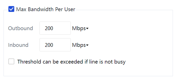 Max bandwidth Per User limits the unbound and outbound speed per user IP address.