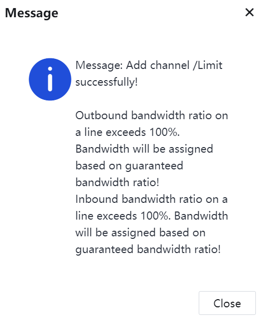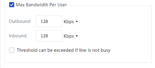 Threshold can be exceeded if line is not busy: Specify whether to enable the intelligent tuning function for the channel. If it is selected, the function is enabled. You can click Settings under Threshold can be exceeded if line is not busy to go to the page to set the line low bandwidth usage threshold. After the function is enabled, when the line load is lower than the low bandwidth usage threshold, the limitation channel can increase the channel bandwidth to a value greater than the user-defined upper limit to keep the load close to the low bandwidth usage threshold. The bandwidth is decreased to the upper limit when the load exceeds the threshold.