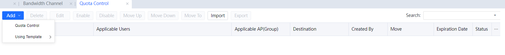 Step 5.Access the Quota Control tab page, click Add, and choose Quota Control.