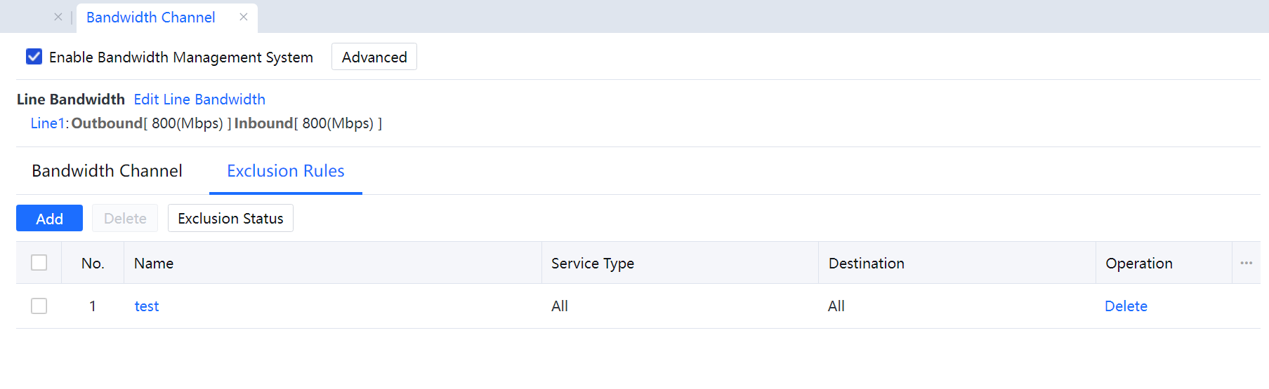 Step 1.Choose Bandwidth Management > Bandwidth Channel > Exclusion Rules, click New, and add an exclusion policy.