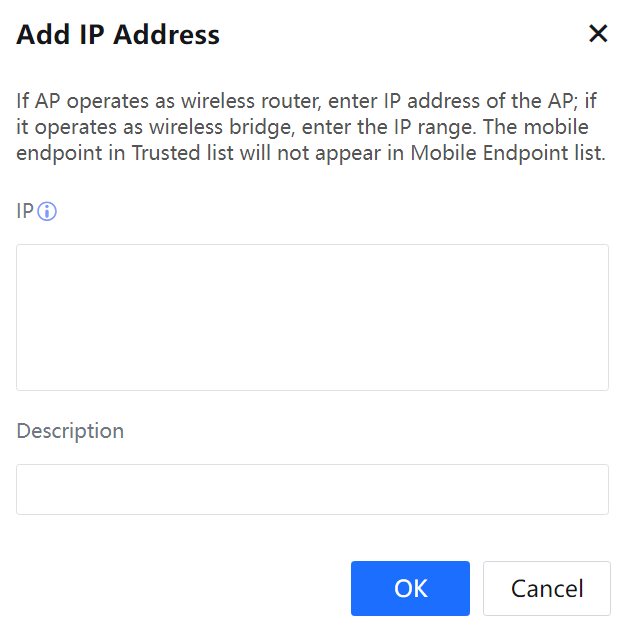 Click Add and enter the IP addresses of APs or the network segments where the APs provide the DHCP function.