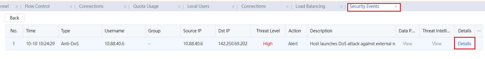 Click the event to link to Security Event Details, and check the data packet, threat information, and details.