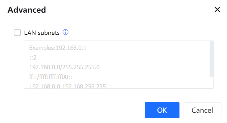 LAN subnets: The LAN subnets refer to the LAN segment that accesses the Internet through the device. Users who are not on the list default to the attacker. When it is enabled, user data that is not in the list will be blocked, and users in the list will be blocked if there is an attack.