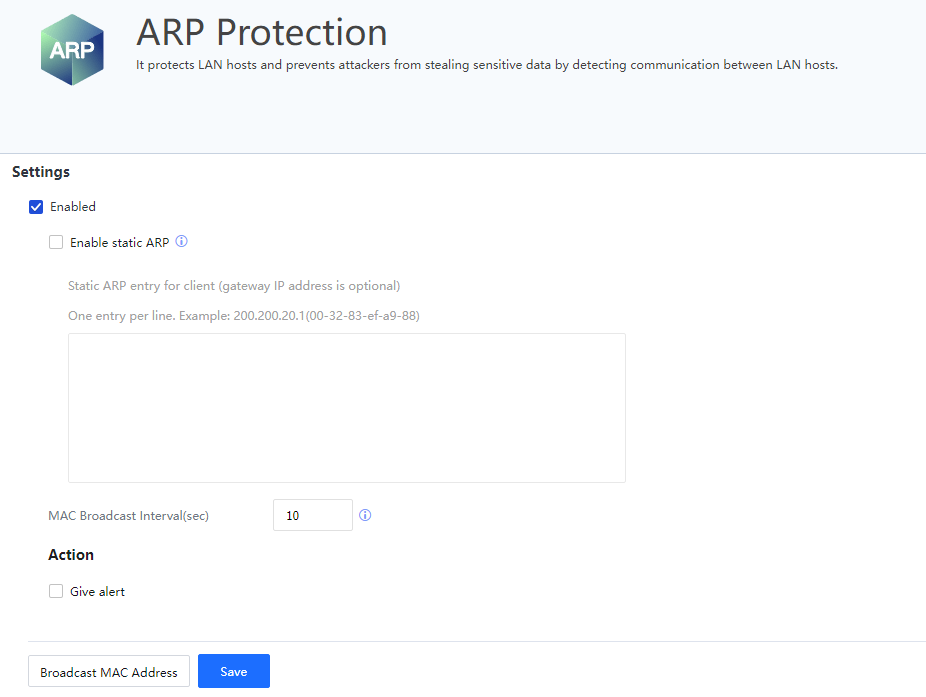 Enable ARP Protection: It is the master switch that enables ARP protection.