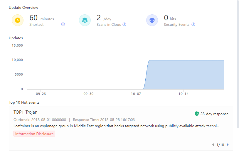 Shortest minutes: The shortest period from the outbreak to the device update detection defense capability of all new threats in the last month.