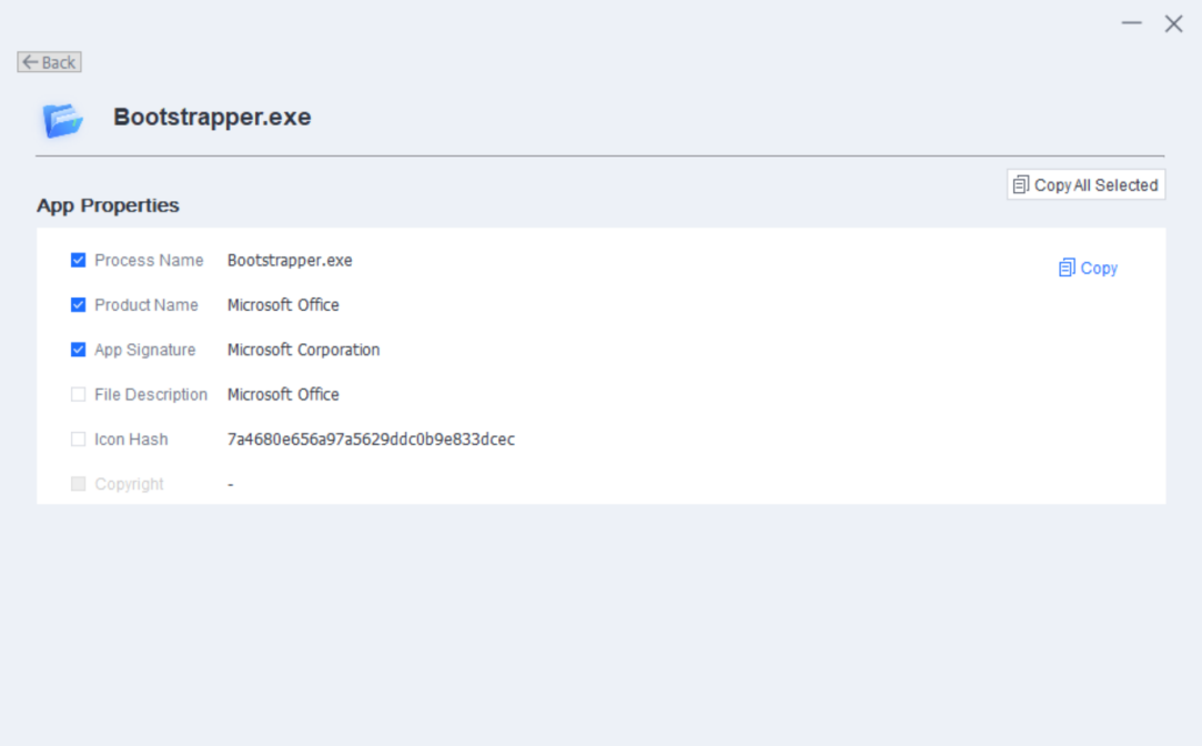 Step 2.Double-click app_tool.exe to open the tool interface. Then, drag the shortcut icon (or the .exe file) of the custom application that you want to add to the blue square box on the tool interface, and click Copy to copy the identified application properties.