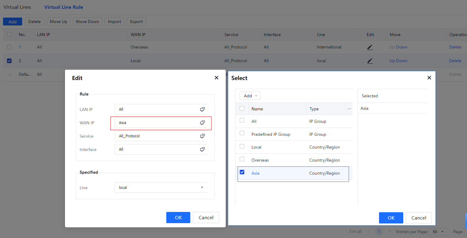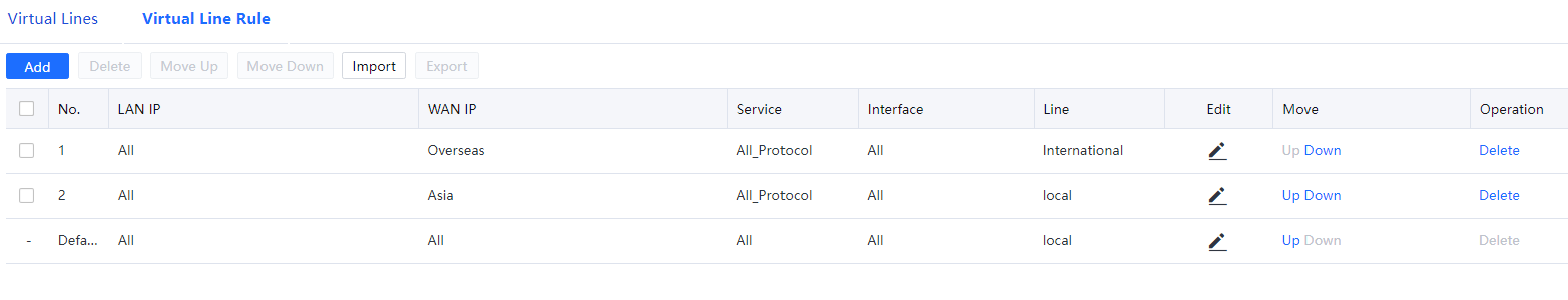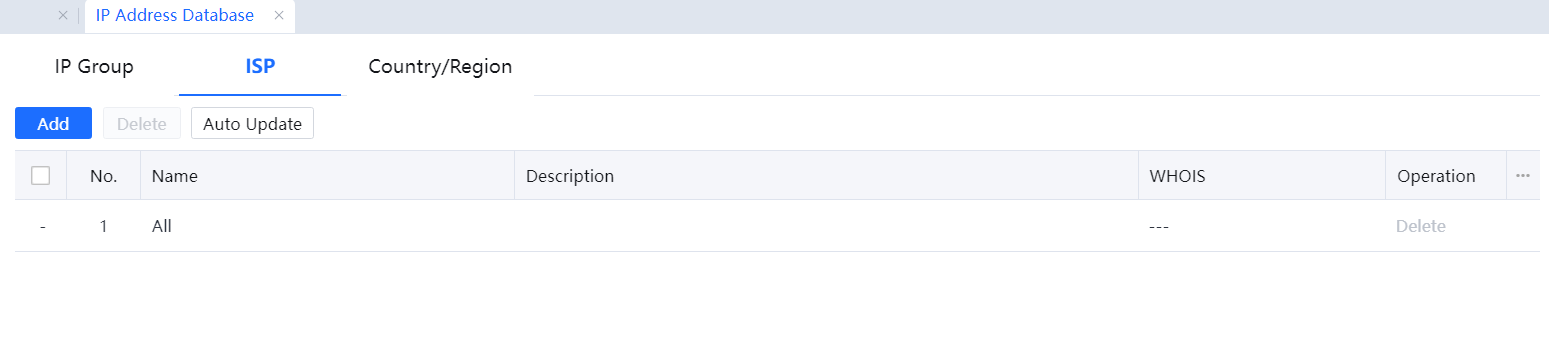 By default, the device contains four ISP address libraries: China Unicom, China Telecom, China Mobile, and the education network.